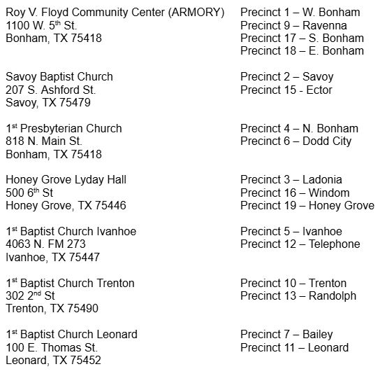 Where: County Clerk’s Office, 800 E 2nd Street, Bonham TX 75418